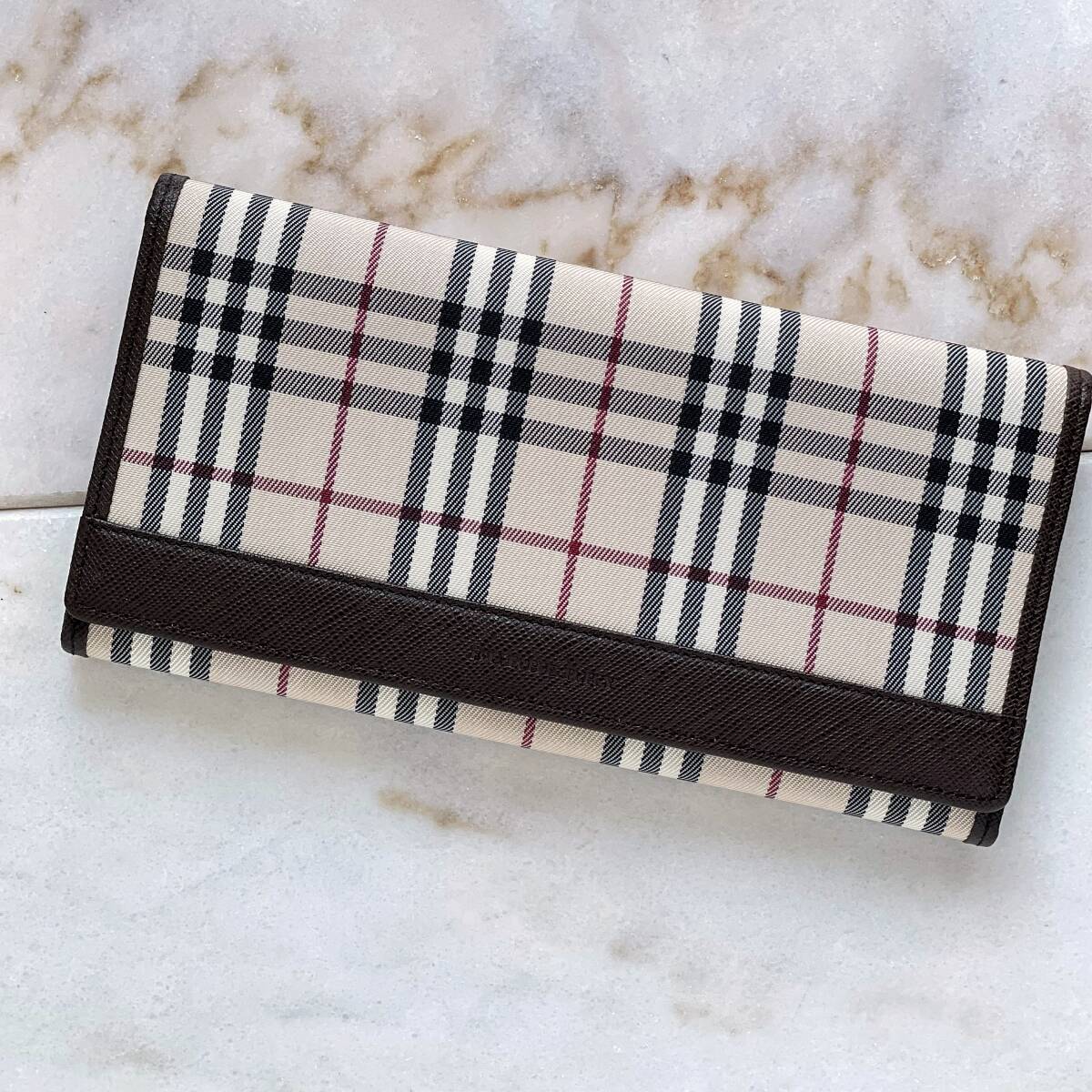 - 未使用品☆BURBERRY バーバリー チェック キャンバス がまぐち長財布 茶