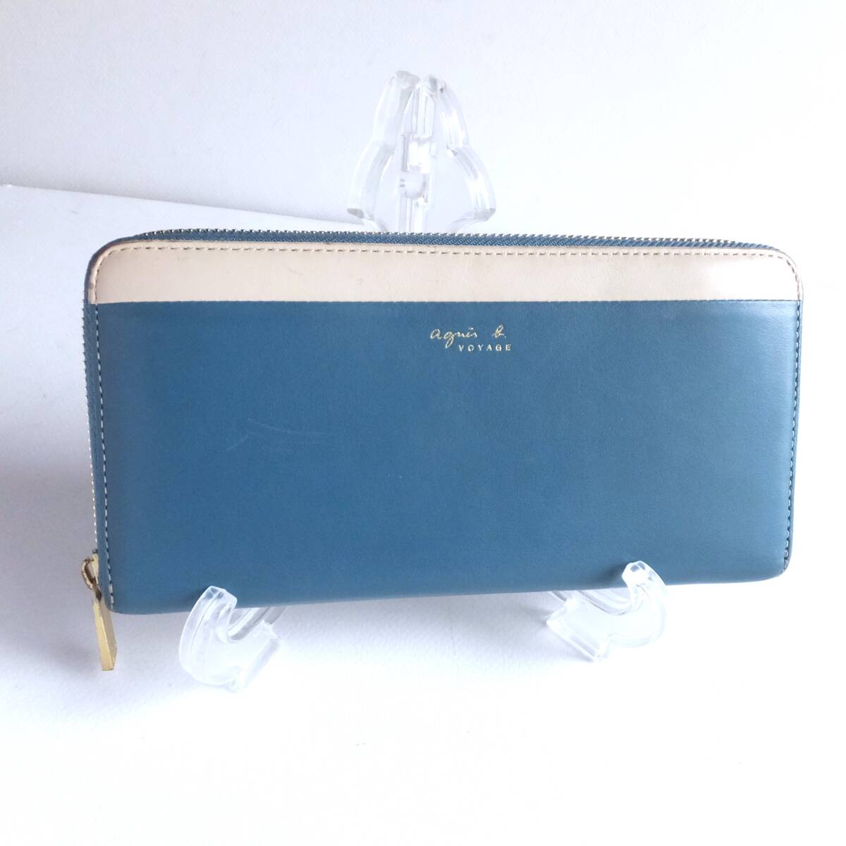 > agnes b. VOYAGE アニエスベー ボヤージュ 本革レザー 長財布 ラウンドジップ 水色系