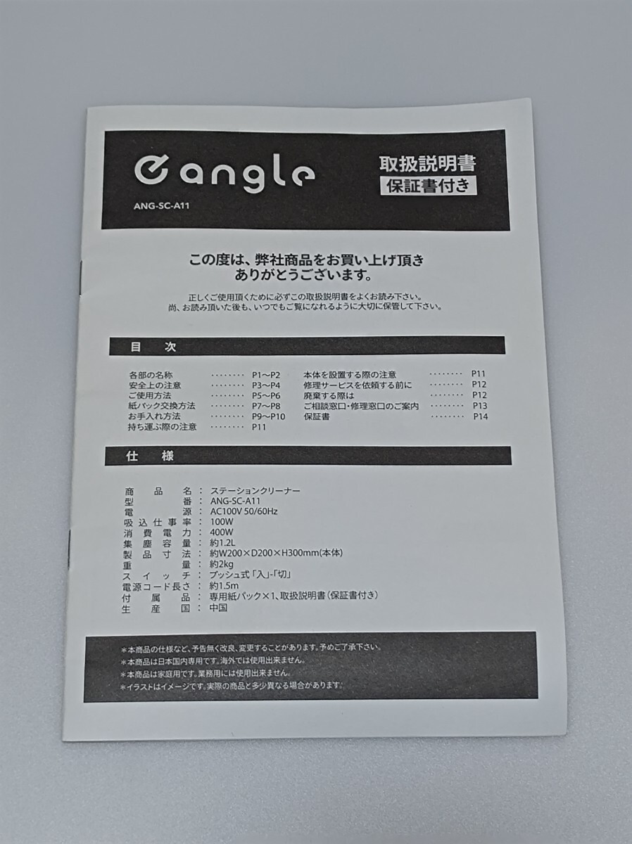 - ステーション クリーナー ANG−SC−A11 取説 送料無料 掃除機 電動チリトリ エディオン e angIe