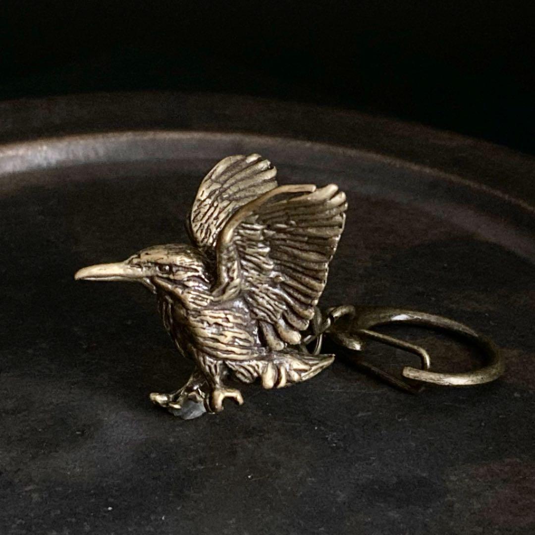 > 086 真鍮 キーホルダー ハチドリ 鳥 ビンテージ 風水 金運 開運 レトロ アンティーク 真鍮製 チャーム アクセサリー パーツ ハンドメイド