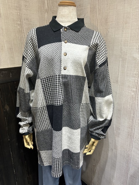 - 90s SLAMMER by Munsingwear マルチカラー モノトーン ブロック チェック ロングスリーブ ポロシャツ ポロニット ユニセックス モード系