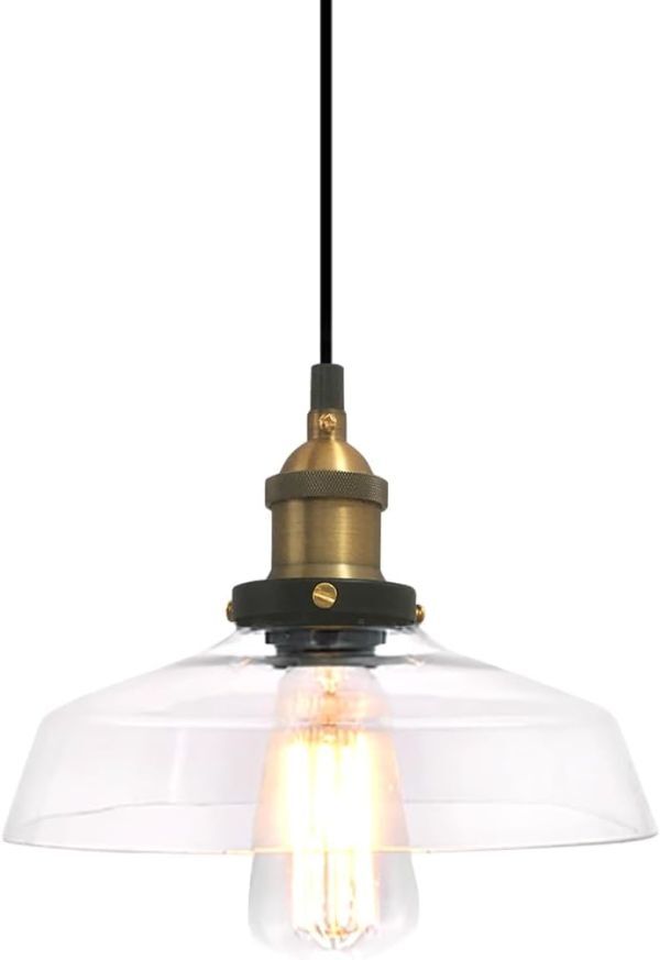 - OTD 工業風ペンダントライト 1灯 ガラス ヴィンテージ 工事不要 E26口金 LED対応 天井照明【Aタイプ ダクトレール式】クリア 電球別売り