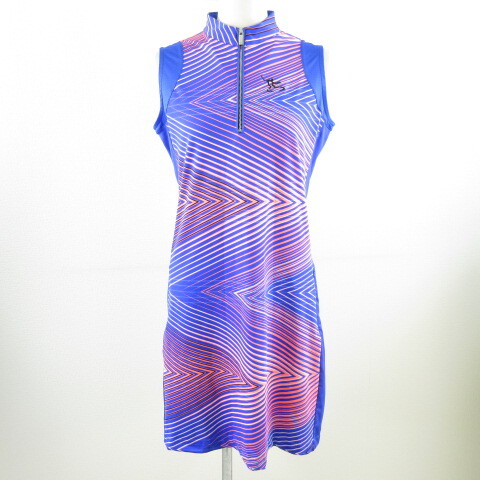 - テイル TAIL ゴルフウェア ノースリーブワンピース ひざ丈 総柄 ストレッチ 青 ピンク S *A550 レディース