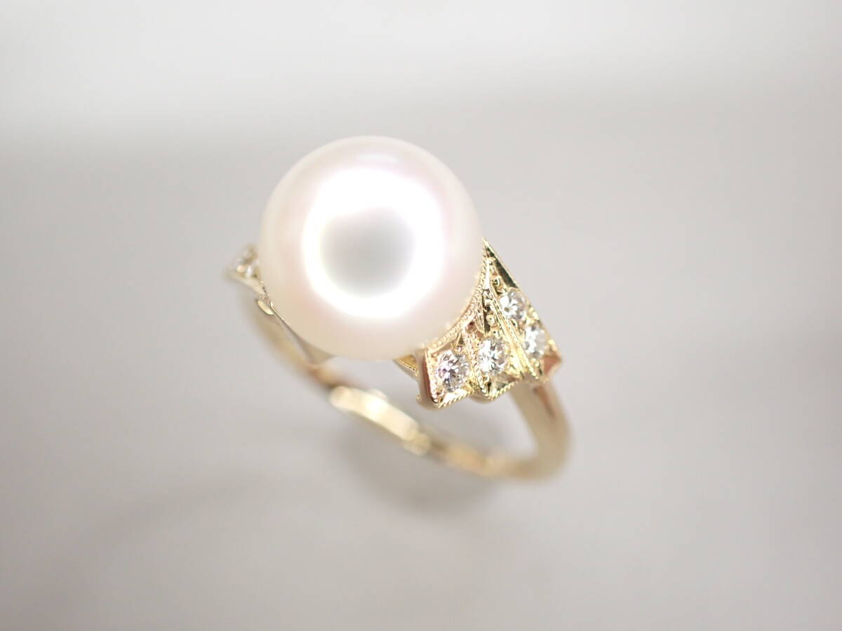 - 6/美品 ミキモト K18 真珠 パール約7.9㎜珠 ダイヤ リング 指輪