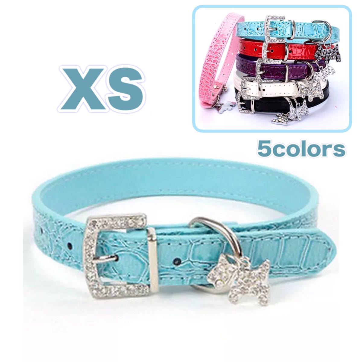 > 首輪 XSサイズ クリスタル スワロフスキー おしゃれ かわいい 犬用 チワワ 犬 猫 宝石 小型犬 犬の首輪 お出かけ 水色 青 ブルー