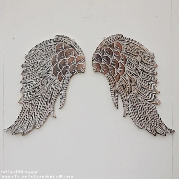 - 羽 オブジェ ブラウンホワイト 天使 翼 壁掛け インテリア ウォールオブジェ 木彫り ウォールデコレーション 飾り 壁飾り