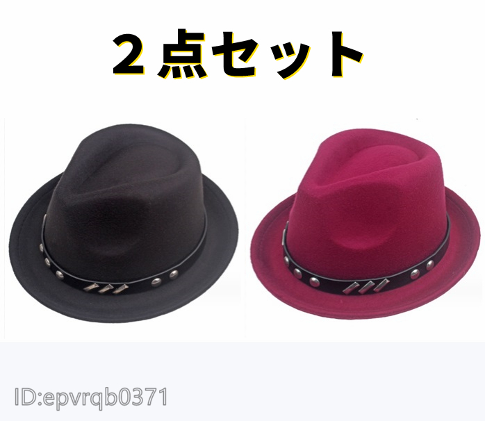 > 2点セット ソフト帽★新品 メンズキャップ ジャズハット 中折れハット 紳士 帽子 フリーサイズ 56-58センチ 黒/ワイン