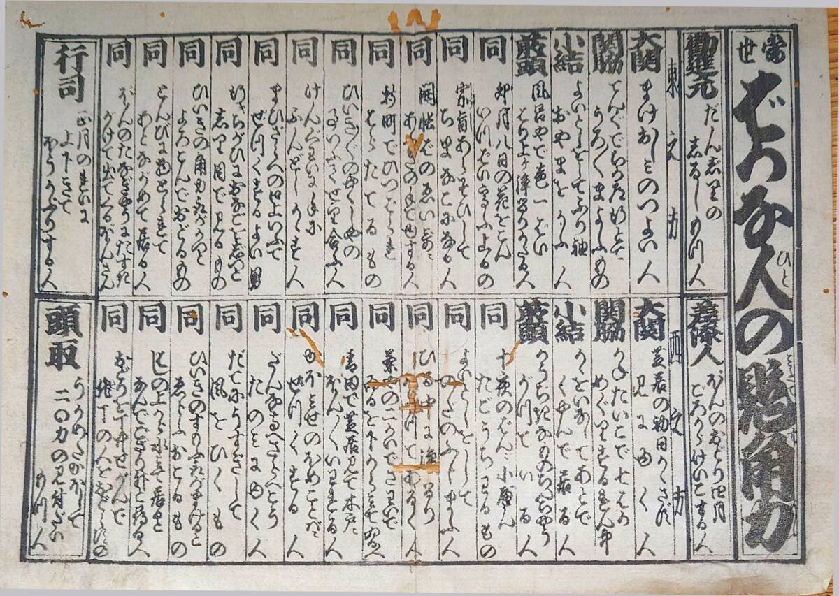 - f240409103〇一枚刷り 浪花みやげ初編 ばかな人のみたて角力 ことば遊び しゃれ なぞ 判じ絵 見立番付 天保年間 塩屋喜兵衛板〇和本古書