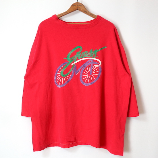 > GUEES■自転車 ロゴプリント 七分袖 Tシャツ レッド/ONE SIZE 80S ゲス USA製