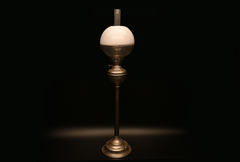 - オイルランプ ■ 古い 座敷らんぷ 雰囲気のある 台ランプ ■ 明治期から大正か h約77cm 骨董 古道具 9690■