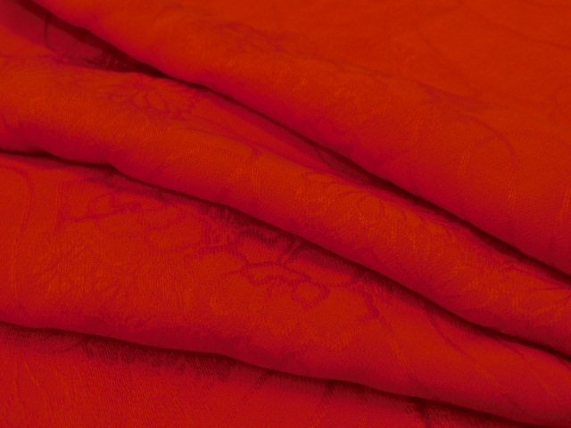 - 〔楽布〕P28754 紋錦紗縮緬 赤無地 ハギレ 一巾 75cm×35cm 古布古裂 大正ロマン k