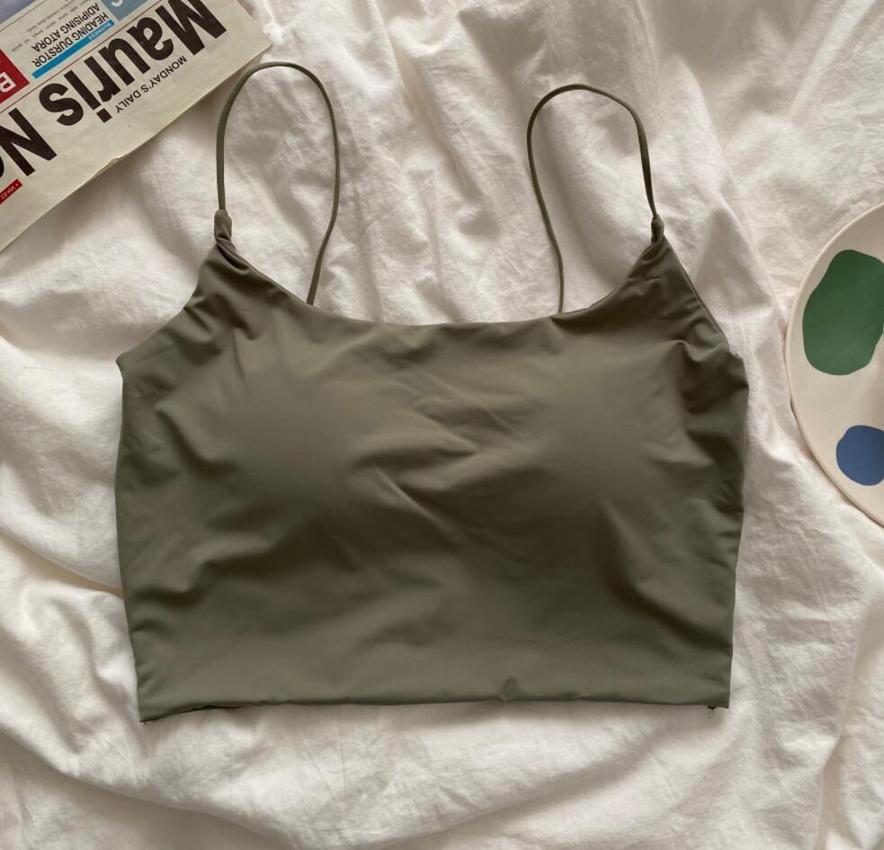 - 春夏秋冬新作 スポーツブラ 女の子 柔らかい ゆったり ブラ ハーフトップ ノンワイヤー カップ付き インナー 着心地上品 四季適用/グリーン