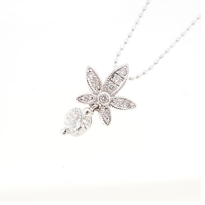> 【jv527】ダイヤモンド ネックレス/0.345ct/0.09ct/K18WG ホワイトゴールド/未使用