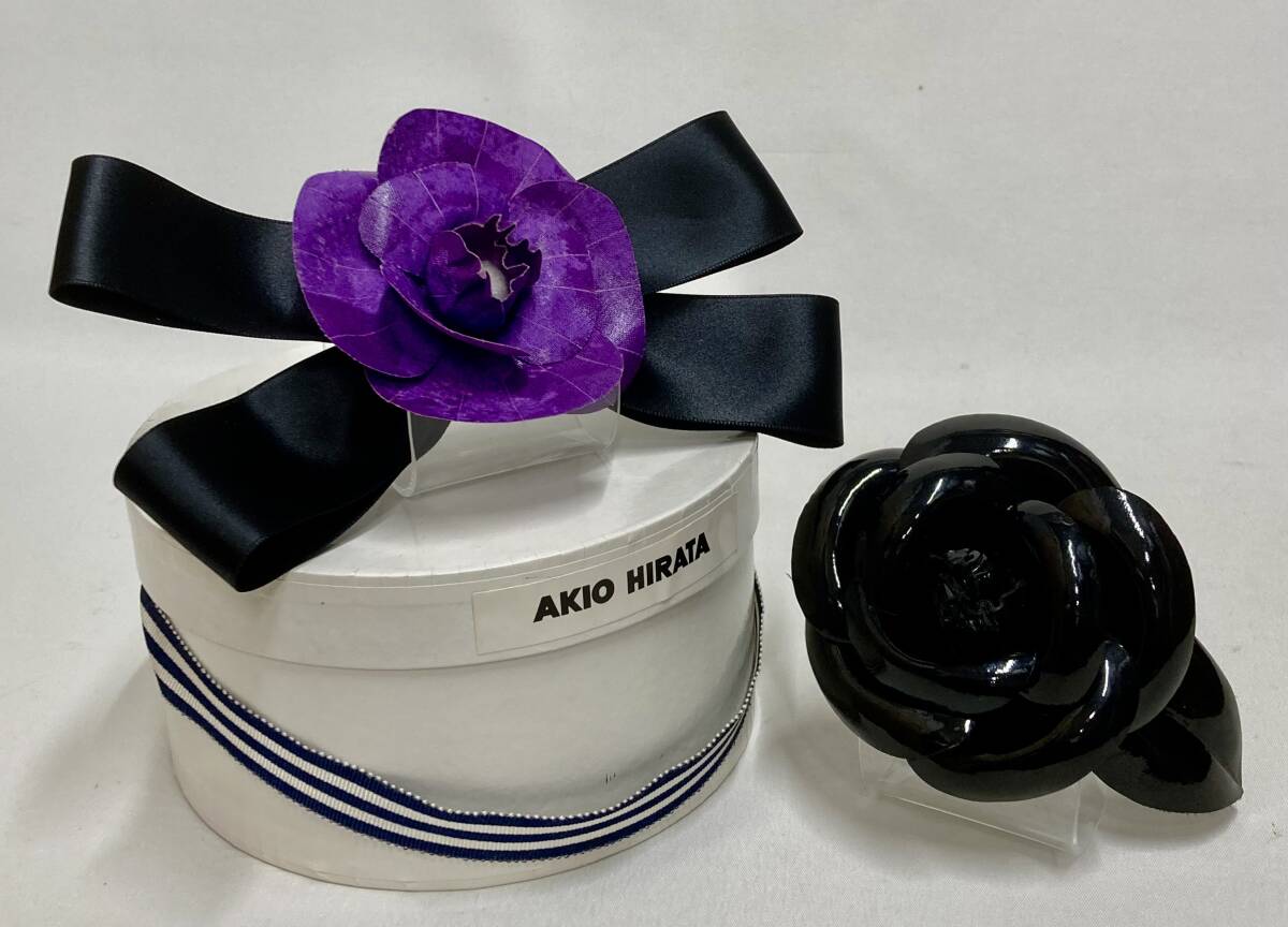 - 美品◆AKIO HIRATA【アキオヒラタ】コサージュ2点セット(紫リボン・黒小花)