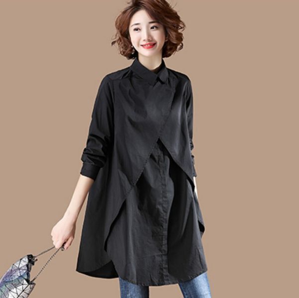 - 新品* 長袖 大きいサイズ ブラウス シャツ おしゃれ チュニック 無地 レディース トップス ゆったり *黒 *L