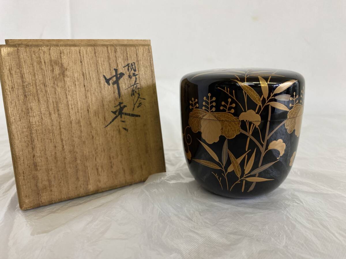 - 塗師 湖春 作 桐竹 蒔絵 棗 なつめ 中棗 共箱 茶道具