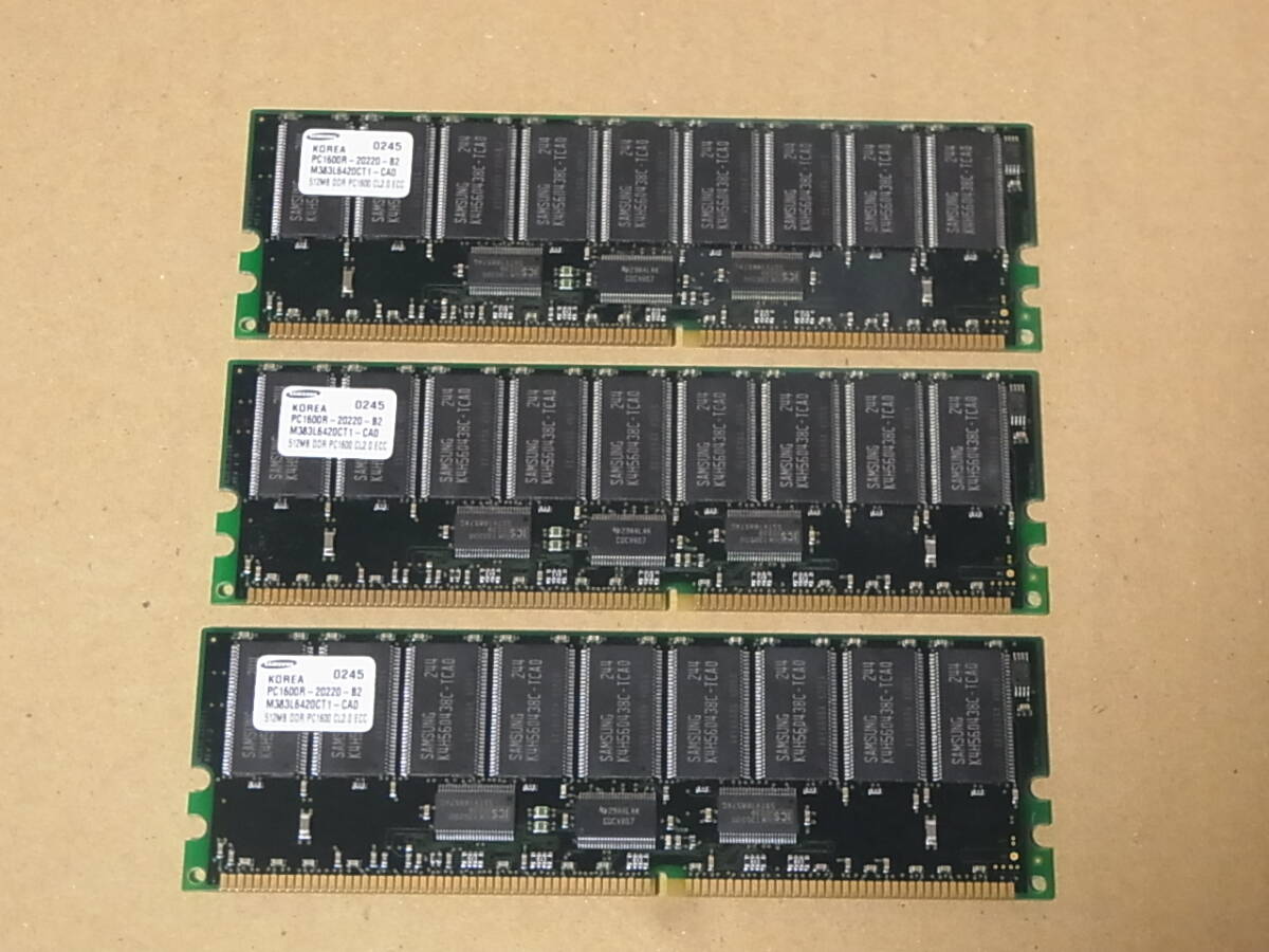 > ◎Samsung PC1600R DDR 200MHz CL2 ECC 512MBx3枚セット 合計1.5GB M383L6420CT1-CA0 (DDR854)