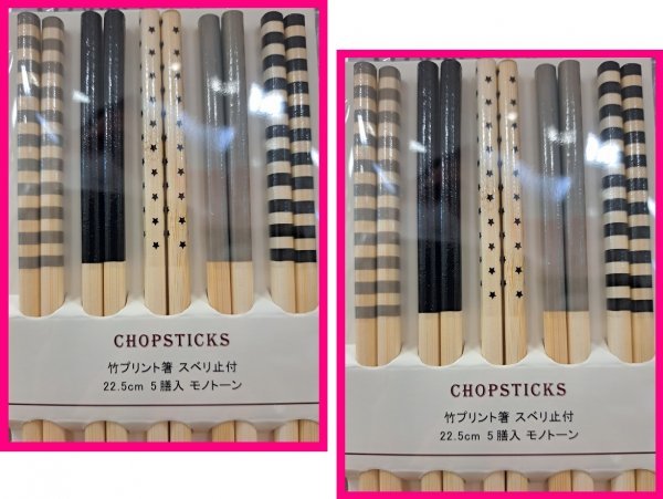 - 【送料無料:箸:10膳:モノトーン柄】★5膳x2:可愛い お箸 「和:モノトーン」柄:22.5cm:すべり止め付き:S:和箸 はし