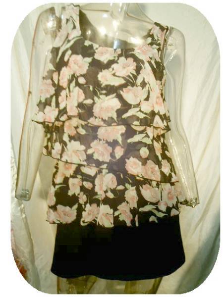 - ★姫カワ系★シフォンお花柄③段フリル★ミニワンピース★M