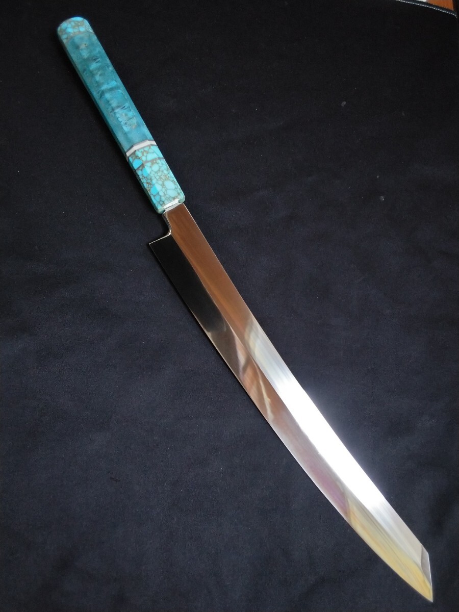 - 城山刃物製作所(堺業務用刃物メーカー直売)尺二 切付け柳刃 超鋼スーパー本焼き(セミステン)(錆びにくい)デュポンコーリアン柄