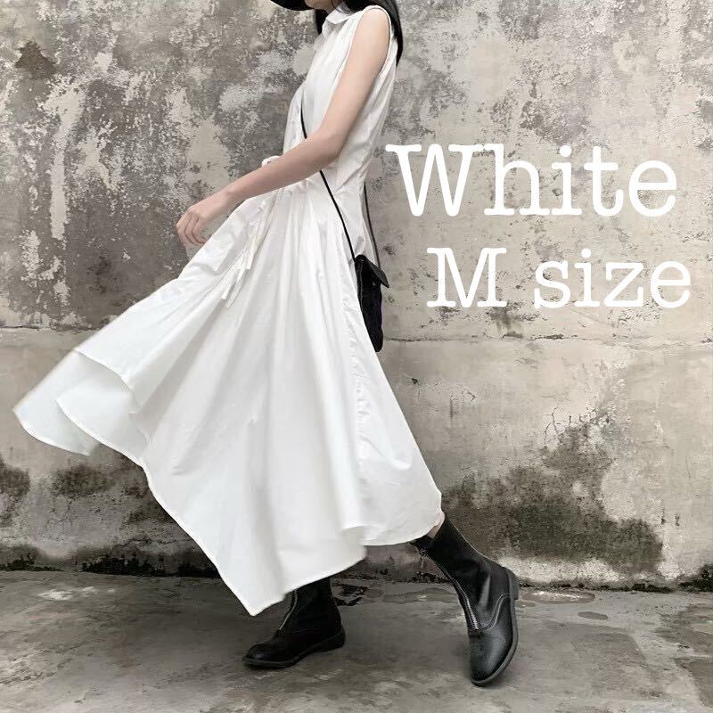 - ワンピース ロングワンピース マキシ丈 ドレス ノースリーブ パーティドレス ロングスカート アシンメトリー モード 白 ホワイト M
