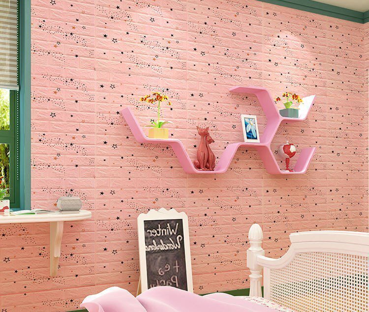 - 高品質 壁紙10枚 3Dウォールシール レンガ 防音 撥水加工 防カビ クッション 簡単リフォーム 星柄ピンク