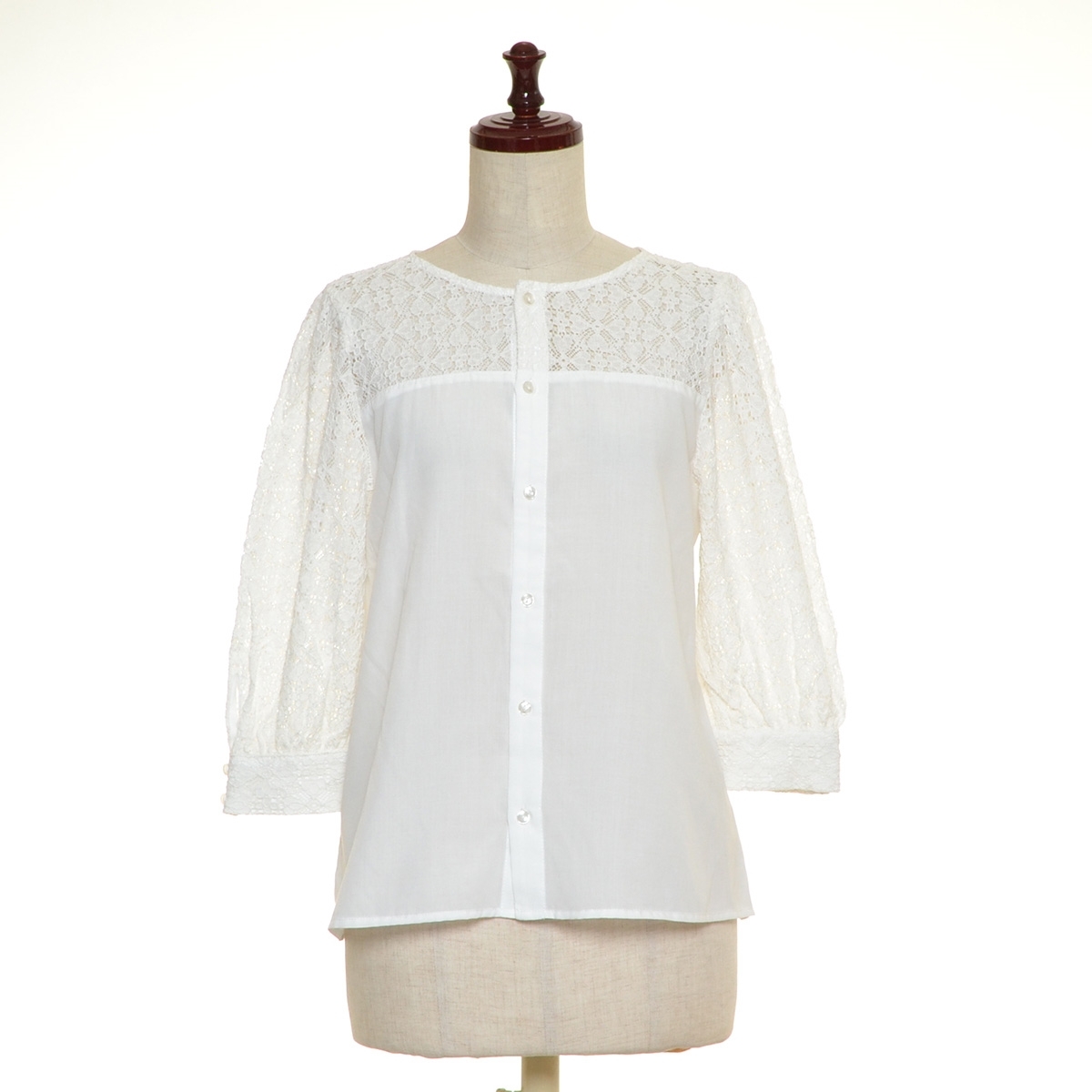 > □479431 ROPE PICNIC ロペピクニック ジュン ◯ブラウス 2WAY刺繍レース7分袖ブラウス サイズ38 22ss レディース ホワイト