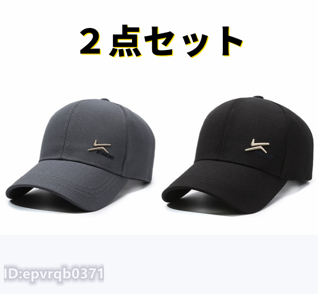 - 「2点セット」野球帽 メンズ キャスケット 刺繍 紳士 帽子 ゴルフ アウトドア フリーサイズ 調節可能 新品 春夏 グレー/黒