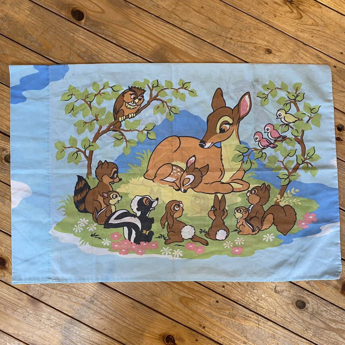 > USA ヴィンテージ ピローケース Disney ディズニー バンビ 枕カバー リメイク生地 鹿 ブルー 素材 袋状両面プリント アメリカ仕入 B1932