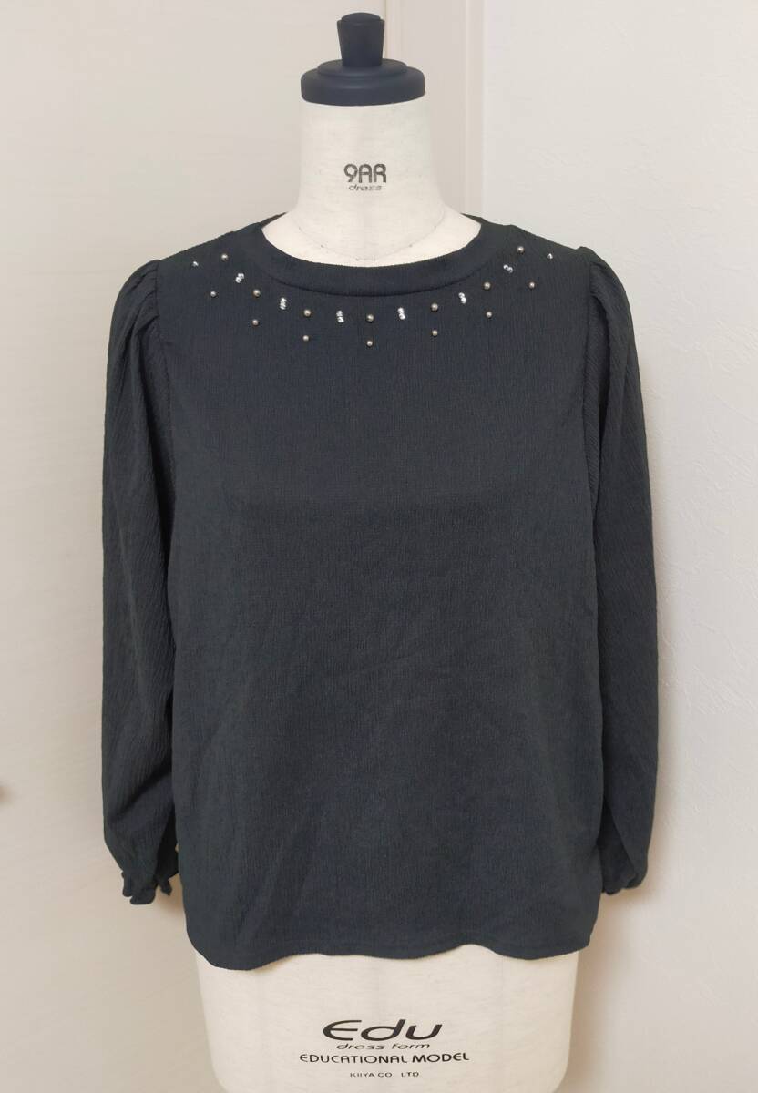 - 未使用★アクシーズファム★パール×ビジュプール★サイズフリー★ブラック★長袖★カットソー★プルオーバー★axes femme