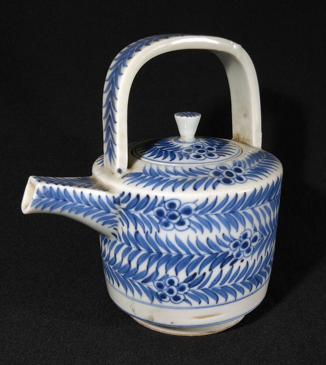 > 古い瀬戸焼 染付 花唐草文 18cm 水指 急須 茶道具 煎茶道具 bse-72(13下)(61)a2955