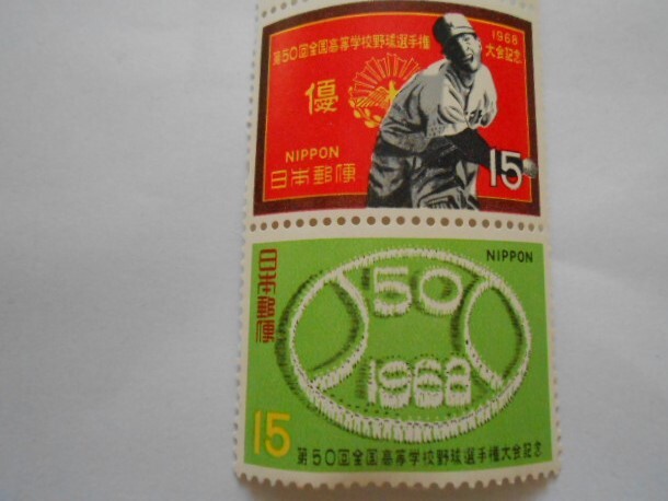 - 第50回全国高等学校野球選挙権大会 1968 未使用15円切手2種