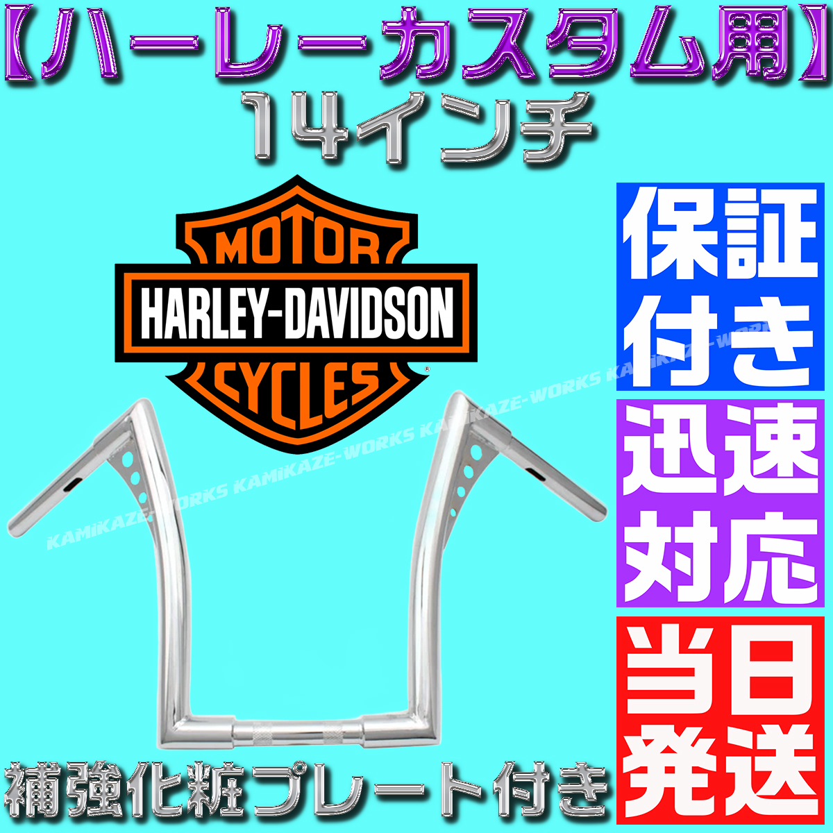 > 【当日発送】【保証付】クローム ハーレーカスタム ハンドルバー 14インチ 1インチ ボバースタイル スポーツスター ダイナ ボブ ソフテイル
