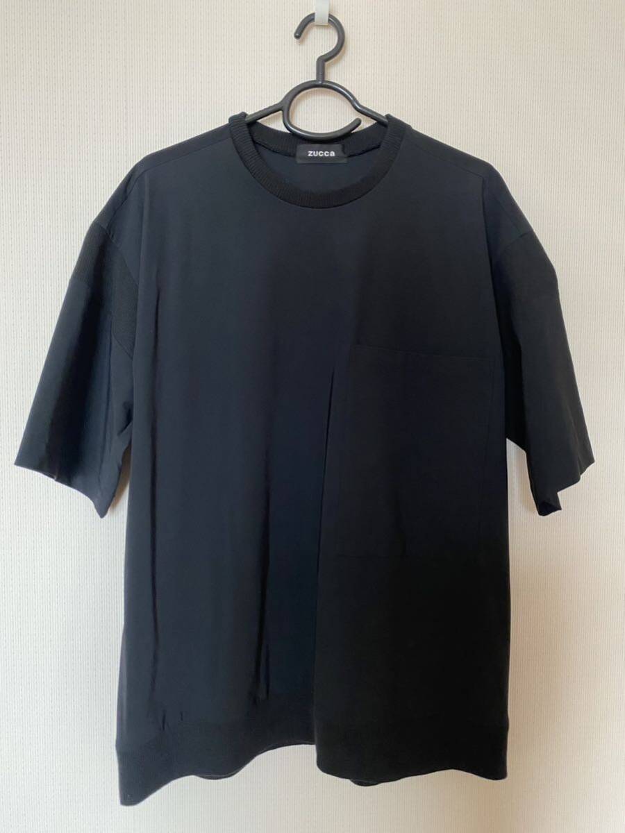 - 美品◆zucca オーバーサイズ ストレッチナイロンTシャツ◆リブ切り替えカットソー プルオーバー◆黒