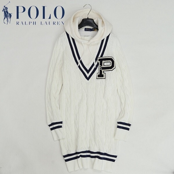 - 国内正規品◆POLO RALPH LAUREN ポロ ラルフローレン ケーブルニット×スウェット レイヤード風 フーデッド チュニック オフホワイト M