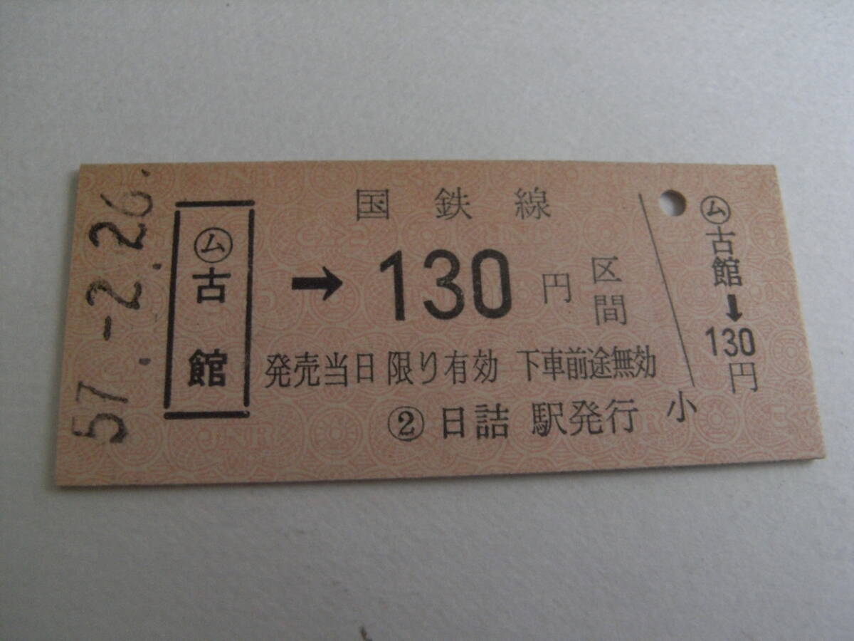 - 東北本線 ム古館→国鉄線130円区間 昭和57年2月26日 日詰駅発行 簡易委託