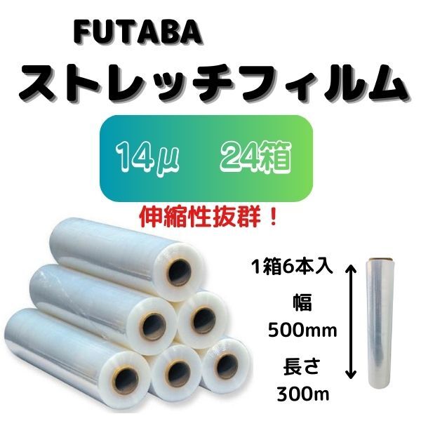 - ストレッチフィルム(手巻用) / 14μ(ミクロン) / 幅500mm / 長さ300m / 6巻入【24箱】
