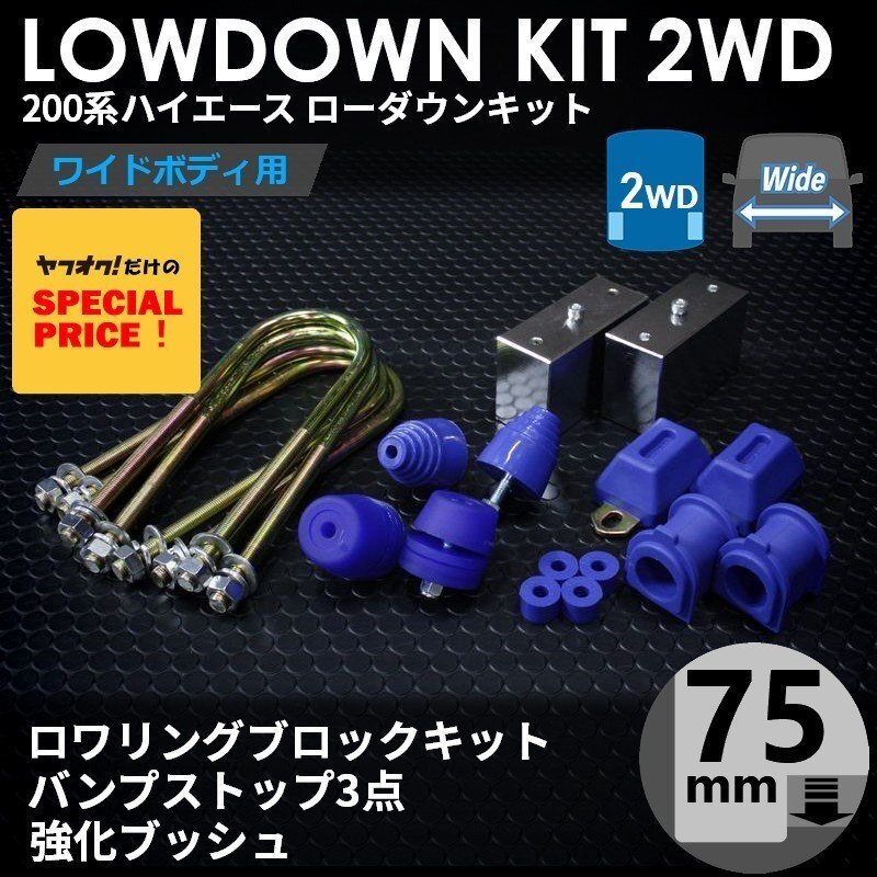 - ○特価 200系 ハイエース 1型-7型 [ワイド 2WD] ローダウンキット 8 [ブロック75mm (3インチ) + バンプ3点 + 強化ブッシュ] S-GL ワゴンGL