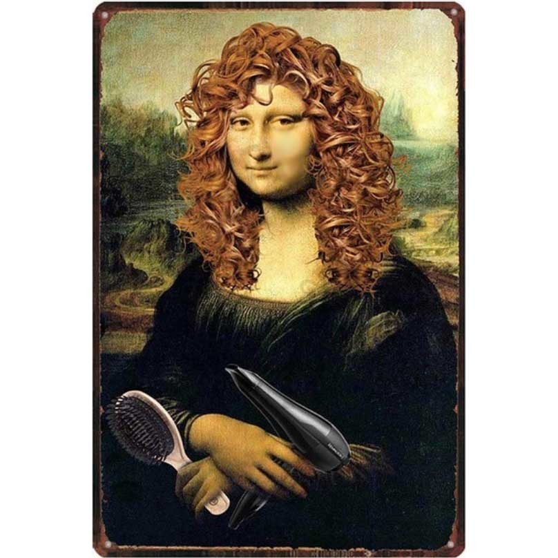 - A3475 メタル サイン ブリキ 看板 金属 プレート 店 絵画 名画 ダヴィンチ モナリザ パロディ ドライヤー 理容 美容 室 8116