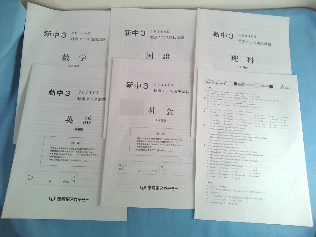 > 【原本】早稲田アカデミー 2024年度 新中3 特訓クラス選抜試験 国語/算数/英語/理科/社会 解答解説付き 2024/1月 実施