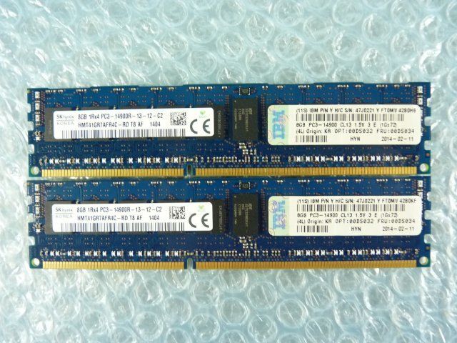 > 1PVL // 8GB 2枚セット 計16GB DDR3-1866 PC3-14900R Registered RDIMM 1Rx4 HMT41GR7AFR4C-RD 00D5034 47J0221 //IBM System x3550 M4取外