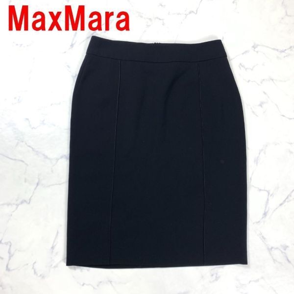 - A2818 マックスマーラ タイトスカート ひざ丈 裏地あり MaxMara STUDIO ブラック 黒 36
