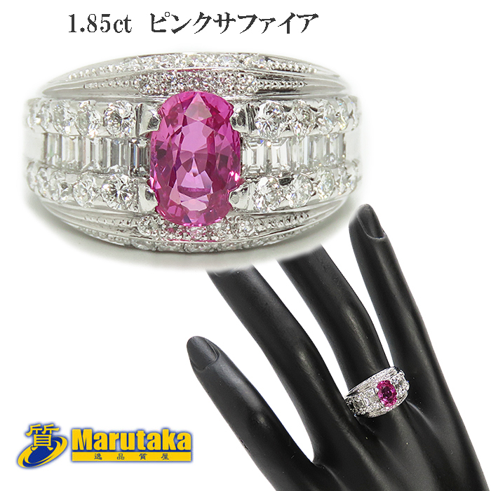 > 送料無料 Pt900 1.85ctピンクサファイア ダイヤモンド リング 14号 指輪 鑑別書付 プラチナ 逸品質屋 丸高 23k185-3