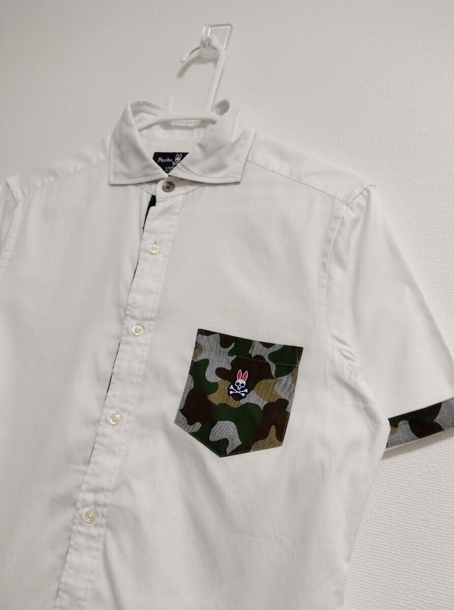 - Psycho Bunny ミリタリー柄 半袖 ボタンシャツ Mサイズ サイコバニー 迷彩 ゴルフ