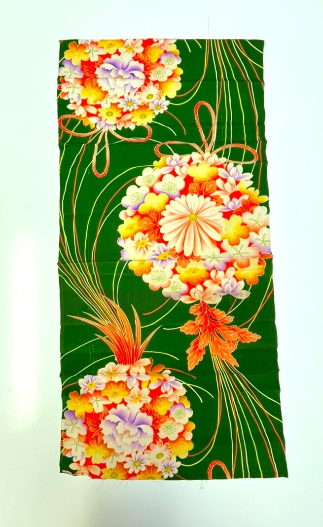 - 花とら●リサイクル端切れ 緑 薬玉 花丸 リメイク 素材 細工用 240424-24