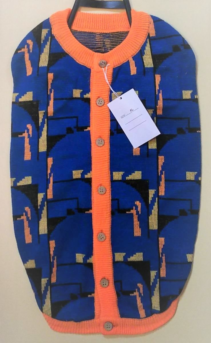 > 4L【犬の服】実測 着丈48cm 胴廻り55cm for シェルティー・ブルテリア@ワンちゃん 洋服 丸首セーター ブルー@中型犬-大型犬 ペット服 2160