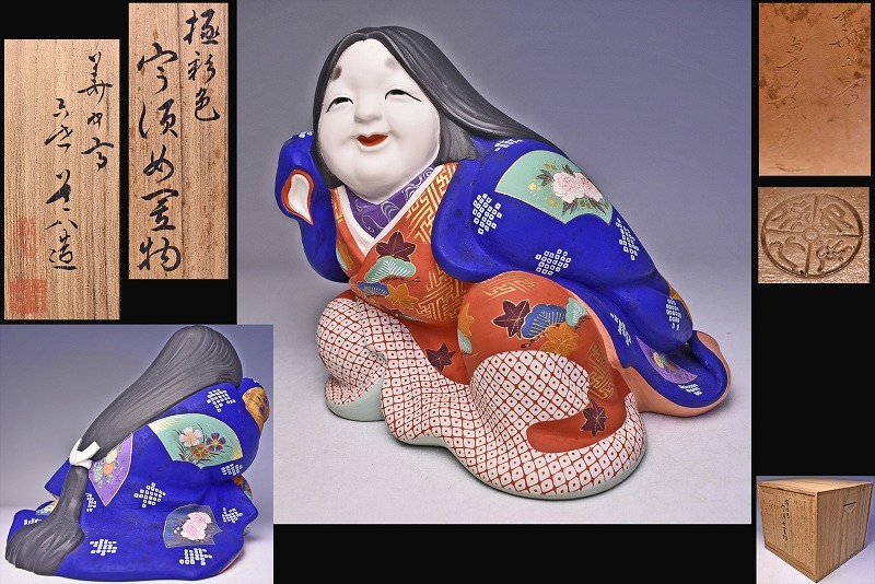 - 高橋道八 6代 ★ 極彩色宇須女置物 ★ 共箱 ★ 上作 ★ 華中亭道八 ★ 宇須女命 神楽 ★ うずめの舞 ★ お多福 ★ takahashi douhachi