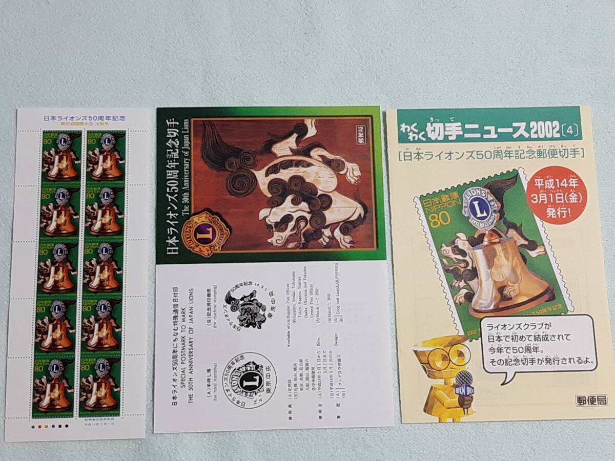 日本ライオンズ50周年記念 H14 切手シート1枚と解説書とわくわく切手ニュース