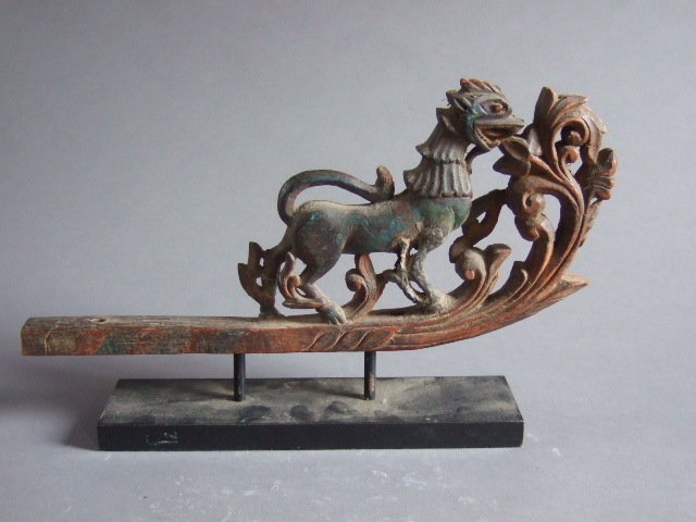 - ジャワ・インドネシア寺院装飾木彫彩色獅子像19-20世紀初頭木の古民藝西洋骨董の愉しみオリエントロマネスク東西交流