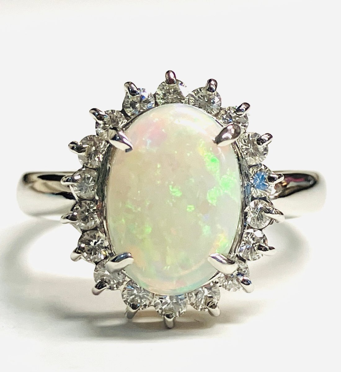 - PT900プラチナ 天然オパール 遊色 ダイヤモンド ダイヤ0.34ct 12.5号 ソーティング付き qoj.YQA13